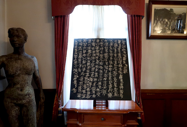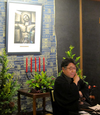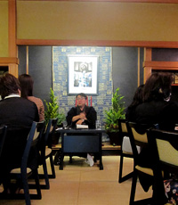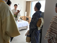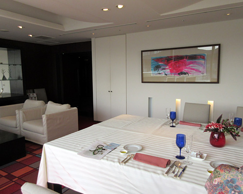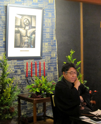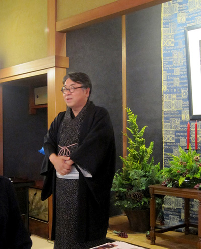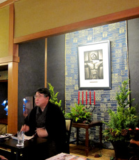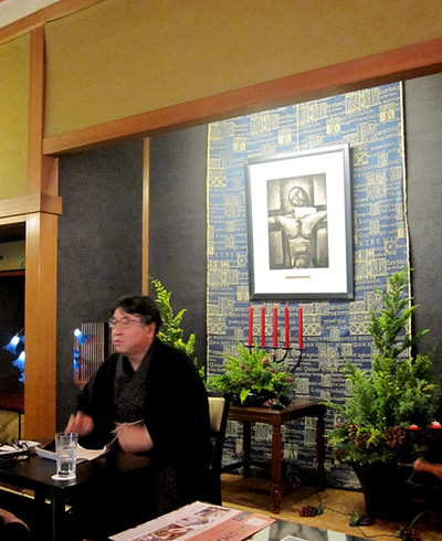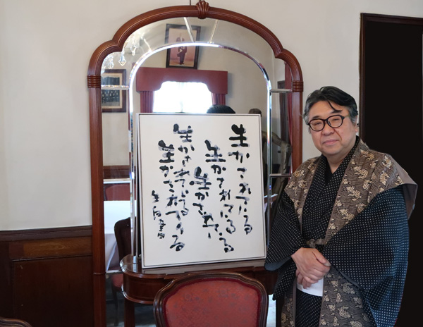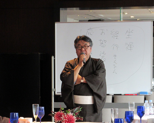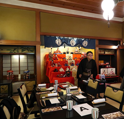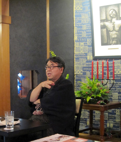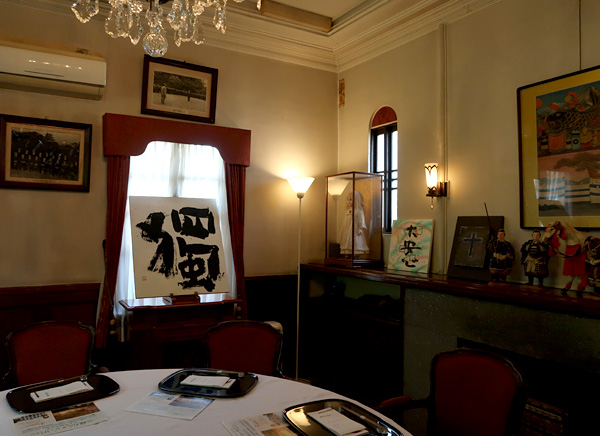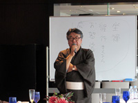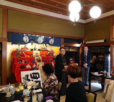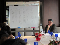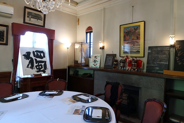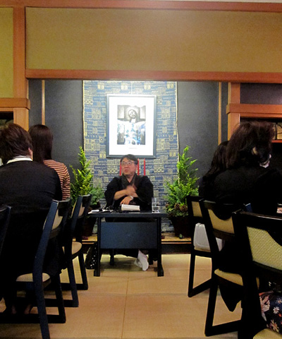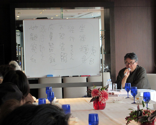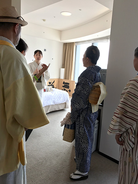 特別に解放される秋葉生白が手掛けたアーティストルーム「禅」を見学したのち、「禅ルーム」の制作エピソードと作品に込めた思いをお話いたしました。ホテル特製ランチも大変評判が良く、皆様に楽しんでいただけました。