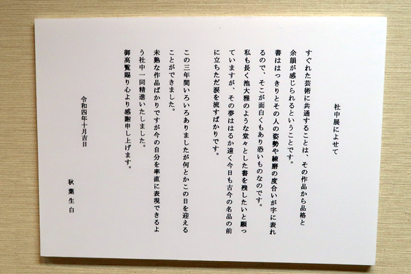 2022年10月31日(月)~11月6日(日)まで、秋光書會展を銀座幸伸ギャラリーにて開催いたしました