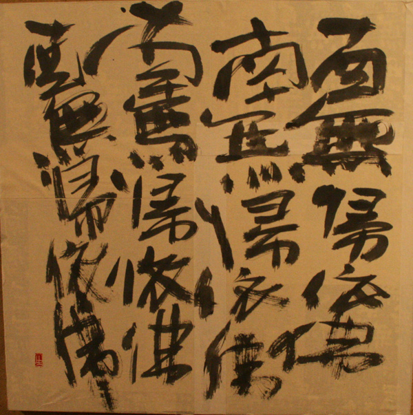 まず、私の書からお話しましょう。全ては、「一」より始まります。「一」を書くことは本当に難しいものです。「一」を心から感動できる書に表現できれば何もいりません。